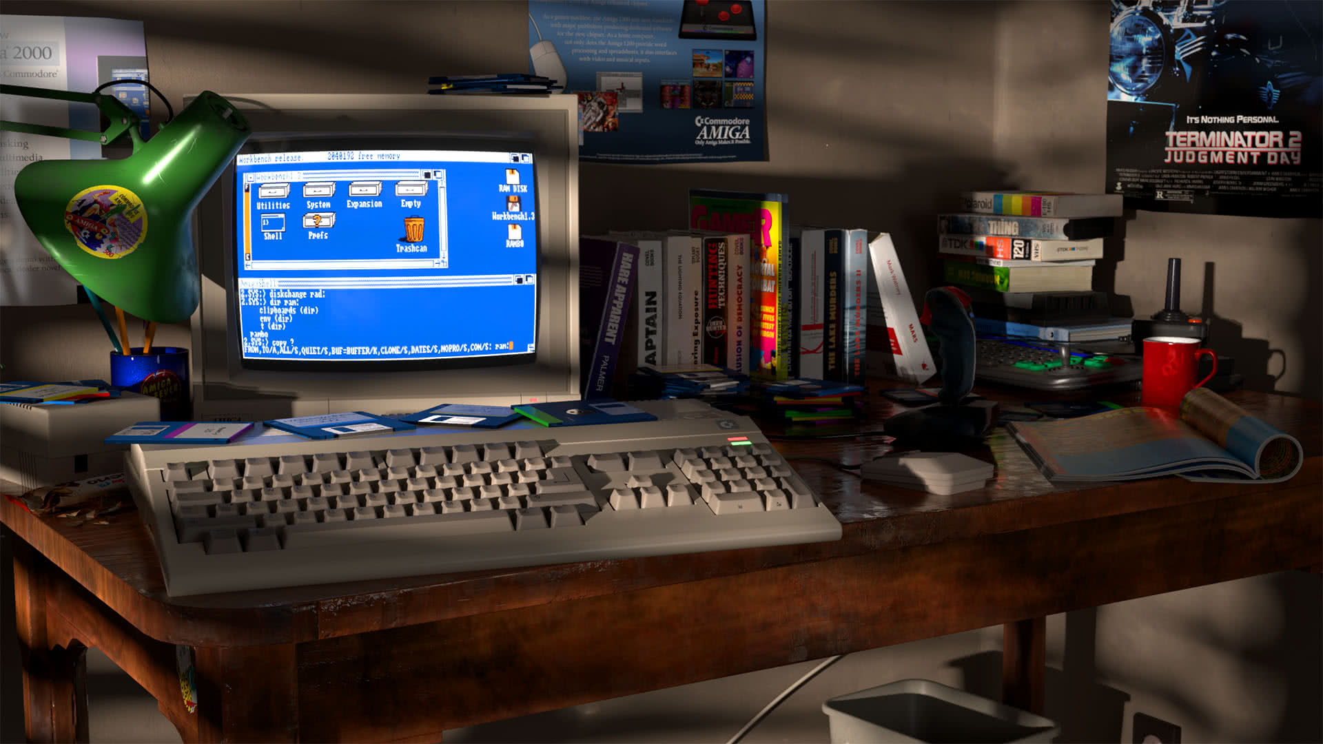 Explorations driven by craft, nostalgia and world building. Includes high detail Commodore Amiga renders staged in a 90s room environment, plus original sci-fi scenes featuring ships and space stations, built to push materials, lighting, composition and cinematic atmosphere.