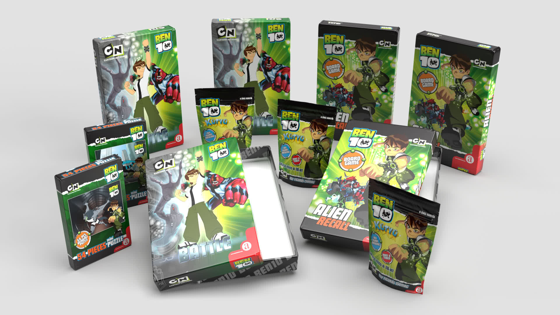 End to end packaging design across toys, FMCG and skincare, from concept and die lines to prepress ready artwork. Highlights include the Cartoon Network Ben 10 board game box set, artisanal bread wraps with compliant labeling, and premium skincare cartons crafted for shelf impact and manufacturing precision
